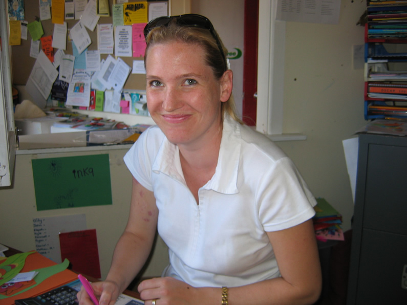 Die Betreuerin auf dem Bild ist Jo, die leider nur als Urlaubsvertretung für meine indische Kollegin bei uns war. Fünf Wochen lang hat sie uns unterstützt und ich fand sie ziemlich gut. Es hat super-viel Spaß gemacht mit ihr zu arbeiten und ich finde es wirklich schade, dass sie nicht mehr bei uns ist. Aber immerhin hat sie uns schon mal eine Mail geschrieben, sie kommt nämlich eigentlich aus England und tourt gerade mit einem Working-Holiday-Visum durch Neuseeland und Australien.