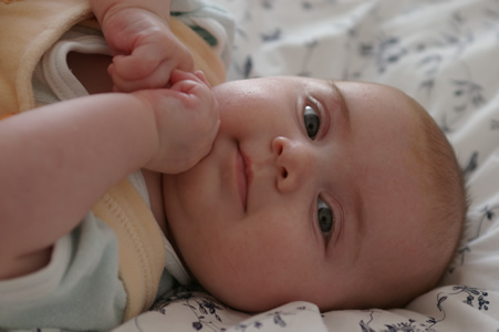 Hui, was machen Babies schnell Fortschritte! Ich bin tatsächlich tief beeindruckt. Marie schläft inzwischen ganz allein in ihrem Zimmer und kann alles was sie greift auch schon gut festhalten. Sie klaut bereits Sachen vom Tisch herunter (naja, wenn Mama sie günstig davor hält) und spielt unter Aufsicht mit ihrem Schnuffeltuch. Wow, irgendwie kommt mir das ganz schön schnell vor. Ist doch noch gar nicht so lang her, dass wir in Deutschland waren und sie ausser Trinken, Lächeln und Pupsen noch gar nichts konnte…