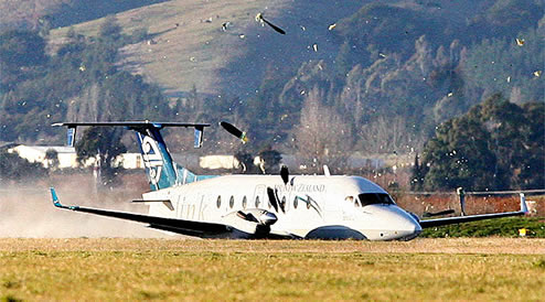 Heute gab es eine spektakuläre Bruchlandung in Blenheim. Zum ersten mal davon gehört habe ich kurz nach meiner Landung in Nelson, als mein Kollege Russell mich anrief und mit “Gottseidank! Du lebst!” begrüßte. Ich war nämlich heute am NMIT und dieses Institut hat nicht nur einen Campus in Nelson, sondern auch in Blenheim und Russel wusste nicht, zu welchem ich mich auf den Weg gemacht hatte. Im Nachhinein stellte sich heraus, dass es sich bei dem Flug nicht um einen regulären Flug nach Blenheim gehandelt hatte, sondern ein Flug aus Timaru, der eigentlich in Wellington landen sollte. Als sich jedoch die Räder im Landeanflug nicht ausfahren ließen, wurde beschlossen, den Flieger nach Bleinheim umzuleiten, um den umfangreicheren Verkehr in Wellington nicht zu stören. Alle 15 Passagiere und 2 Crewmitglieder (in einer Beech Aircraft gibt es keinen Flightattendant, der Job wird vom Copiloten miterledigt) sind nach dem Bauchklatscher wohlbehalten aus dem Wrack gekrochen. Die Passagiere hatten danach die Wahl, entweder mit der Fähre von Picton aus nach Wellington überzusetzen, oder mit dem Bus nach Nelson gebracht zu werden und von dort zu fliegen. Und ich glaube, ich hatte einige von denen auf meinem 2.55 Uhr-Flug, zumindest war der komplett voll besetzt, was sonst um diese Zeit sehr selten ist.