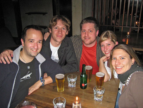 In 1998 I did an internship at an organisation which took care of boys who chose to do a year of social service instead of military service. Part of this internship was a trip to Berlin with a group of young guys. A member of my group was Benedikt from Wülfrath and right from the beginning we got along with each other very well. Even after the trip we met a few times, but then we lost track of each other. We met again just recently on Facebook and once we had confirmed each other as friends, it turned out that Bene had already planned a trip to New Zealand (and Australia, and Bali, and somewhere else). It was clear, that he would stay with us during his stay in Wellington – after ten years we had a lot to talk about! His arrival was planned for Sunday, the day Kai returned from Bangkok. Last week I had a bad cold and couldn’t even join JJ, Ben and Andy for their day walk to the Rimutakas on ANZAC Day, so my plan for Saturday was to take it easy, get well again and go to bed early enough to be fit for our visitor. Didn’t quite work out that way, because in the late afternoon Bene called and told me that he had picked up a chilean traveler and that they were on their way to Wellington, estimated arrival around midnight. He added that the guy from Chile was “clean”, and so I agreed and they really showed up in the middle of the night. That was soooooo great! They even brought me my favourite lollies from Germany (Nimm 2). The following days were filled with talking, eating, sightseeing, laughing, discussing, cruising through Wellington, coffee by the sea, a visit to Te Papa and the traditional Sunday dinner at JJ’s and Ben’s place. Unfortunately Kai was sick when he arrived back from Thailand, so he couldn’t join us for some of the stuff we did, but at least he always joined us for dinner! When I dropped off Bene and Pablo at the airport this morning, it was really hard to say good-bye – back in the car I even had to cry a wee bit. For my health the sleep deprivation didn’t do any good and today I feel even sicker than yesterday – but it was definitely worth it!
