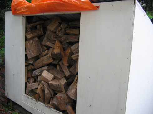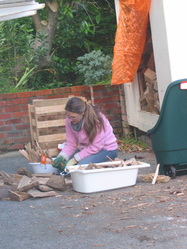 Am Freitag haben wir eine frische Ladung Feuerholz geliefert bekommen. Traditionsgemaess wird der LKW in der Einfahrt entleert, der Fahrer nimmt seinen Scheck entgegen und verschwindet wieder. Zurueck bleibt ein riesiger Haufen Holz, der vorm naechsten Regenguss in Sicherheit gebracht werden muss. Ich habe also meinen gesamten Vormittag damit verbracht, Holzscheite von der Auffahrt in den Holzschuppen zu verladen. Irgendwann war der Holzschuppen voll, was noch uebrig war kam in die Garage. Holzschichten ist eigentlich eine nette Aufgabe; man ist draussen an der frischen Luft und kann ueber viele Dinge nachdenken. Es gibt niemanden der stoert und kein Telefon das klingelt. Nachdem ich mit dem Holzwegschaffen fertig war, habe ich mir mein Hackebeil geschnappt, und einige Holzstuecke zu Kindlingen verarbeitet. Kindlinge sind die kleinen, trockenen Holzstuecke, die man zum Entzuenden eines Feuers braucht, und Kindlinge sind teuer. Ein Sack kostet etwa 10 Dollar und reicht ungefaehr eine Woche lang, zumindest wenn man taeglich heizt. Da die meisten Kindlinge von Solid Energy auf den Markt gebracht werden, die wir wegen ihrer ignoranten Haltung gegenueber Arten- und Umweltschutz nicht unterstuetzen, fand ich die Idee, Kindlinge selbst zu machen, gleich nochmal doppelt so gut. Und ich muss auch echt sagen, dass Holzhacken eine echt tolle Beschaeftigung ist. Dabei kann man noch gleich dreimal so gut nachdenken wie beim Holzschichten, denn man hat Ohrenstoepsel in den Ohren und hoert keinerlei Geraeusche ausser dem eigenen atmen und das Klopfgeraeusch wenn das Beil auf den Holzklotz niederschlaegt. Ich war so konzentriert, dass Kai sogar heimlich Fotos von mir machen konnte, ohne dass ich es bemerkt habe. Natuerlich gingen mir auch seltsame Dinge Kopf, wie zum Beispiel die Frage, ob Kinder ausserhalb des Ruhrgebiets auch “Brennholz!” rufen, wenn sie mit ihrem Schlitten auf schneebedeckten Huegeln rodeln. Aber auch mit weniger trivialen Dingen habe ich mich auseinander gesetzt, das war echt schoen. Von echtem Erfolg war meine Aktion allerdings nicht gekroent – in zwei Stunden habe ich ungefaehr einen Sack voll Kindlingen hergestellt. Da ich nur 10 Dollar gespart habe, macht das einen mickerigen Stundenlohn von 5 Dollar, dafuer habe ich aber selbst heute (Sonntag) noch immensen Muskelkater. So wirklich gelohnt hat sich also zumindest das Kindlinge-hacken nicht. Und Nachdenken kann ich auch beim Spazierengehen am Strand. Trotzdem war es eine nuetzliche Erfahrung, ich habe viel ueber unterschiedliche Holzbloecke gelernt und mir die beste Technik erforscht. Hauptziel war ja eh, fuer den kommenden Winter mit genug Holz ausgestattet zu sein, und das sind wir nun!