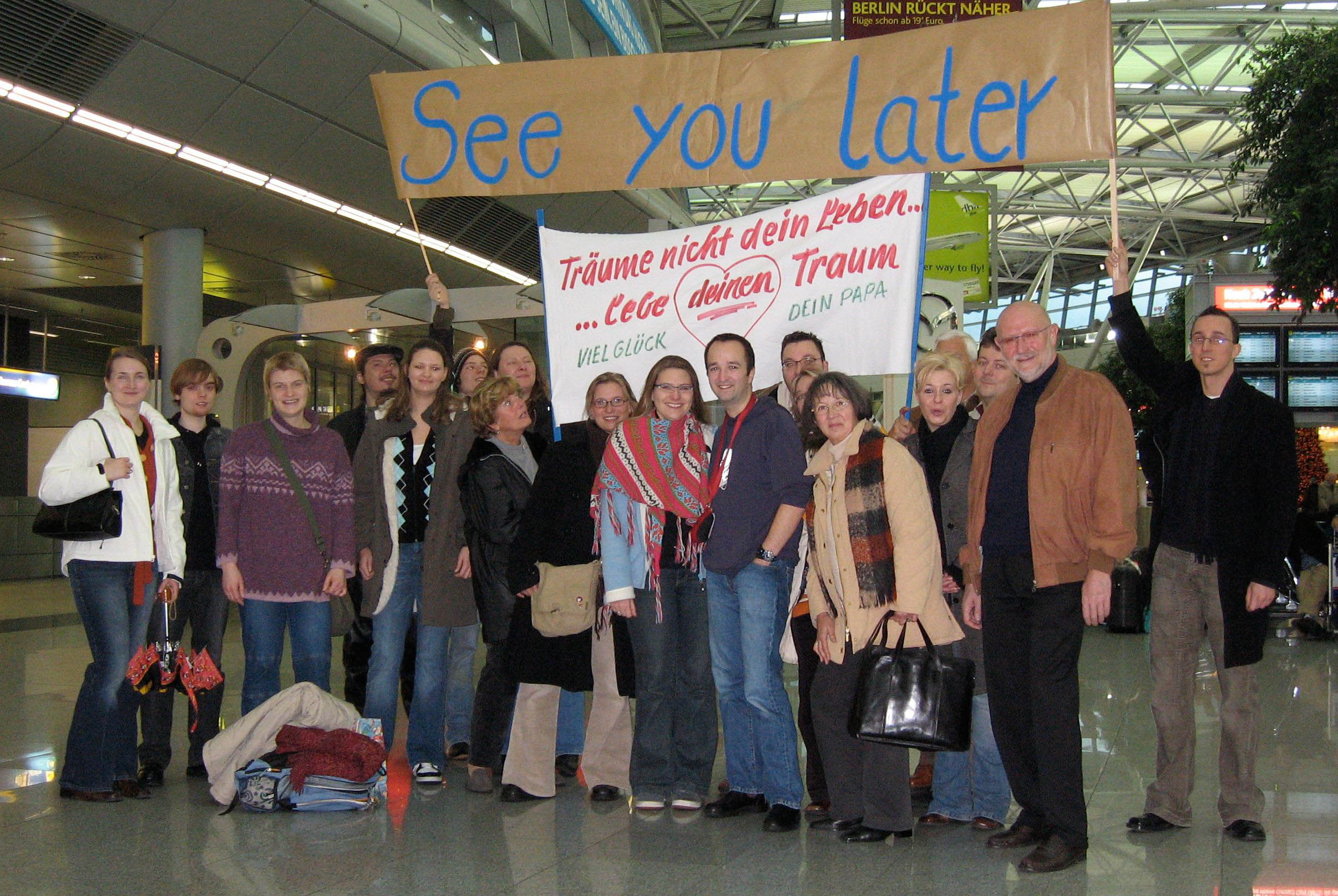 Heute soll ich ein Foto von mir und meinen Freunden posten. Da ich quasi zwei Leben habe (ein “früheres” Leben und Deutschland und mein derzeitiges in Neuseeland) habe ich zwei verschiedene “Sets” von Freunden – Freunde nah und Freunde fern. Das erste Foto ist von unserem Abschied von Deutschland. Die meisten Leute die uns zu dieser Zeit sehr am Herzen lagen hatten sich in aller Frühe (ich glaube es war gegen 6 Uhr morgens) aufgerafft, um uns am Düsseldorfer Flughafen zu verabschieden. Das war ein ziemlich bewegender Moment, und ich bekomme immer noch Gänsehaut, wenn ich daran denke.