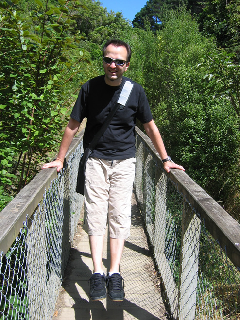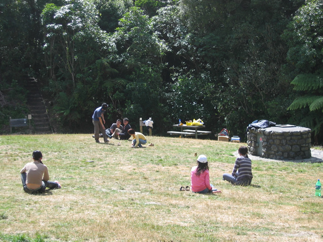 Nachdem wir gestern erst spät in die Heia gekommen sind (wir konnten uns mal wieder nicht von 24 lösen), haben wir erstmal ausgeschlafen. Nach einem gemütlichen Frühstück mit Bircher Müsli und Pancakes in einem netten kleinen Café sind wir in den Norden Wellingtons auf gebrochen, wo wir im Otari Wilton’s Bush einen Bushwalk unternommen haben. Das ist eine super-schöne Gegend, in der man viele einheimische Pflanzen sehen und auch Tiere beobachten kann. Die Wege sind zwar ziemlich steil und an manchen Stellen muss man tierisch viele Treppenstufen überwinden, um die Hügel rauf oder runter zu kommen, aber Kai und ich haben uns trotzdem durch die Unterschiedlichen Wege geplagt. An einem Picknickplatz konnten wir dann die asiatische Variante von “Blinde Kuh” beobachten: eine riesige Gruppe Asiaten hockt auf der Wiese, ein armes Opfer bekommt die Augen verbunden und muss nach den anderen tasten. Die anderen dürfen sich aber bewegen, was ein wenig fies ist, da der Suchende so ewig unterwegs ist. Damit es aber nicht zu schwierig wird, muss jeder, der sich von seinem ursprünglichen Platz entfernt, ein Kleidungsstück dort liegen lassen. Wir haben das Schauspiel nicht lang genug beobachtet, um festzustellen ob es tatsächlich einen Sieger gab, aber es sah schon witzig aus, wie die Leute leise über den Boden robben, ihre Sachen ausziehen und hinter sich liegen lassen und der Arme “Blinde” verzweifelt versucht, jemanden zu finden… ;)