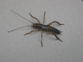 Heute war sehr schönes Wetter, deshalb habe ich mich morgens schon recht früh (nachdem ich mit Nina telefoniert hatte) in den Garten gewagt! Ich habe gerupft, gezupft, gegraben und gefegt, unter anderem habe ich auch die Garage sauber gemacht. Dort ist mir dann eine gigantische Weta begegnet! Ich hab vor lauter schreck wohl einen kleinen Schrei von mir gegeben, auf jeden Fall kam Kai erstmal panisch angesaust. Wir haben sie dann erstmal auf ein Stück Karton geschoben, sie fotografiert und im Garten wieder ausgesetzt. Sie hat versucht mich anzugreifen, hat drohend ihre Fühler und Hinterbeine erhoben. Wenn sie nur wüsste, dass ein einziger Schritt sie zerquetschen und zermalmen würde…